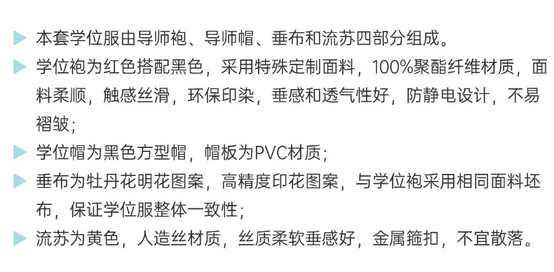 研究、設計(jì)、生(shēng)産、銷售高(gāo)端學位服™€&、專屬學位服、校(xiào)園文(wén)化(huà)¥ ↑服飾、職業(yè)工(gōng)裝、文(wén)創産品