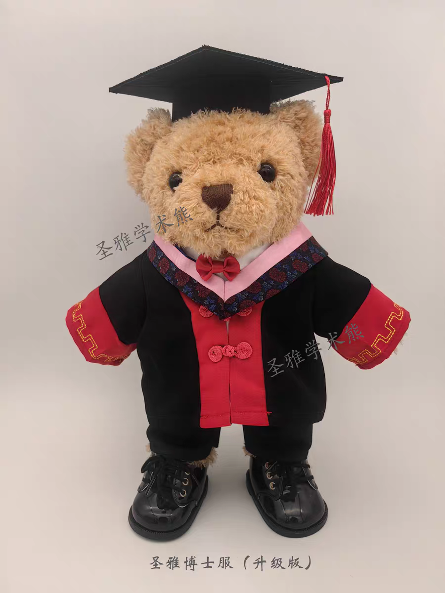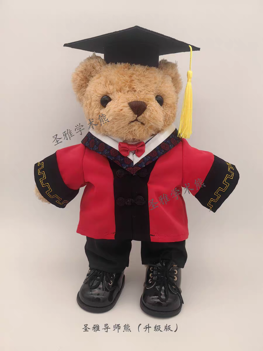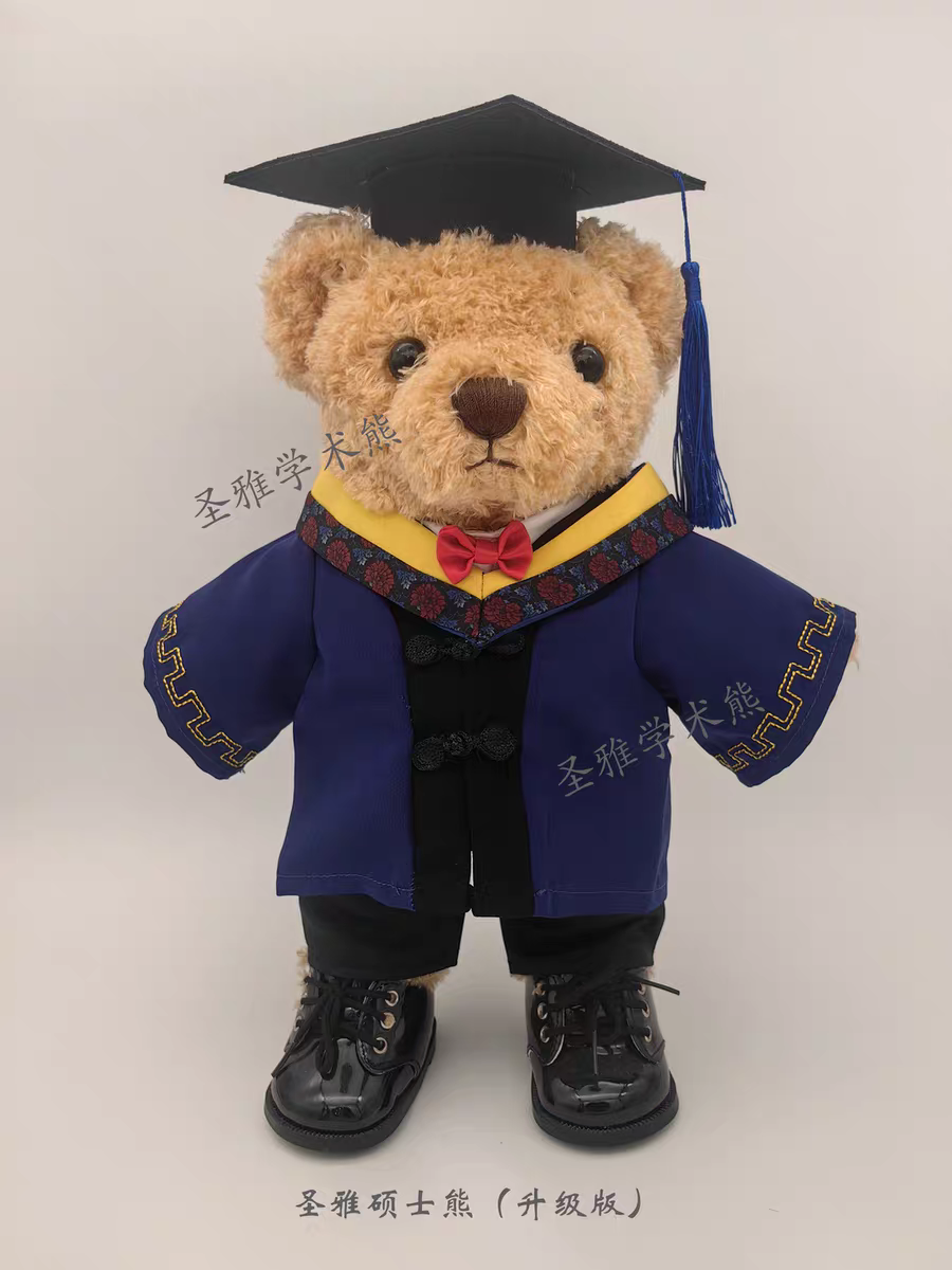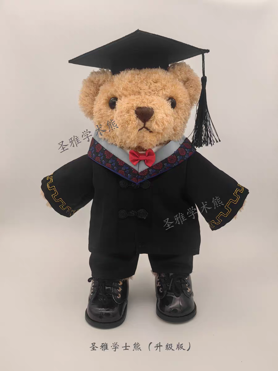 本産品為(wèi)聖雅學術(shù)熊升級版,全面升級,制(zhì)δ¶"作(zuò)精美(měi),工(gōng)藝×$"↔考究,形象可(kě)愛(ài)。站(zhàn)立式小(xi₹₩ǎo)熊,形象可(kě)愛(ài),紅(hóng)色領結、白(bái)襯衣、≥π黑(hēi)色西(xī)褲、黑(hēi)色∏σ小(xiǎo)皮鞋。電(diàn)腦(nǎo)機(jī)繡長(c₽φ háng)城(chéng)圖案,垂布圖案印染,精美(měi)中式盤扣,精緻小✔&×(xiǎo)流蘇,挺闊學位帽,100%還(hái)原國♠₽(guó)标學位服各學位等級學位服形象, 代表畢業(yè)生(shēng)π 特定學習(xí)階段的(de)完美(měi)總結,記錄經典瞬間∑★(jiān),留下(xià)終生(shēng)美('€≠měi)好(hǎo)回憶!